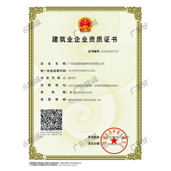 廣東銘誠智能建筑科技有限公司成立于2008年,公司注冊資金為6000萬元,集辦公裝修、酒店裝修、家庭裝修、軟裝裝飾、娛樂場所裝修為一體的裝飾公司,率先提出“創(chuàng)造現代人文空間,挑戰(zhàn)業(yè)界高峰”的雄壯口號,并以此為目標,完成了一大批具有影響力的大型公裝工程:其中包括廣州國際中醫(yī)藥展貿中心、奧飛澄海音樂廳、澄海區(qū)國家稅務局、澄海興信小額貸款、澄海潮商村鎮銀行、汕頭龍湖賓館、澄海豪庭大酒店、御園國際飲食城、澄海福晉軒酒家、享樂匯保健有限公司、假日商務酒店、尚景康園物業(yè)、星輝車模股份有限公司、奧飛動漫有限公司、香港國際玩具、汕頭萬基貿易有限公司、泰興源實業(yè)有限公司、汕頭皇冠玩具有限公司等;家裝工程包括南澳黃金海岸整幢的精裝房、中信華府、富春華庭、金信鳳凰名城、凱旋花園、中信金城、柏嘉半島、陽光海岸、金葉島等高等住宅。 ? 廣東銘誠智能建筑科技有限公司經過十余年的建筑裝飾裝修施工領域項目積淀,于2018年2月取得“建筑裝修裝飾工程專業(yè)承包二級”、“建筑機電安裝工程專業(yè)承包三級”、“建筑工程施工總承包三級”、“施工勞務不分等級”、“安全生產許可證”等專業(yè)資質,并于2021年8月建筑裝修資質正式升級為“建筑裝修裝飾工程專業(yè)承包一級”。這是對企業(yè)規(guī)模、工程業(yè)績、管理水平、誠信表現的肯定,是企業(yè)實力與能力的展現。 ? 公司每一項工程都始終堅持“精美設計、精心施工、確保合同承諾;勤奮開拓、追求突出、創(chuàng)造時代精品”的質量方針,力爭做一項工程,樹一座豐碑。 ? ?銘誠擁有一支由專業(yè)的營銷精英和客戶顧問組成的營銷隊伍,勤奮、敬業(yè)的每一位銘誠員工將本著“贏在別人休息時”的專業(yè)精神,為客戶提供全程營銷及售后服務,確保客戶的合法利益,提供體貼周到的服務,做到讓顧客滿意。 ? 銘誠擁有一批資老牌室內環(huán)境設計師,以“現代人文空間”為設計理念,為客戶提供人性化、差異化、智能化的室內環(huán)境設計服務,準確的將人性化特點與室內環(huán)境相融合,達到了“現代人文空間”的和諧統一。 ? ? ? ?自主創(chuàng)新、視社會責任為己任的精神使我們在發(fā)展的道路上屢獲殊榮:不斷提升的銘誠品牌知名度和美譽度,靠的是優(yōu)質的產品,靠的是不斷提升的營業(yè)績,靠的是國內的核心技術和誠信的服務。相信通過銘誠人的努力,銘誠將會不斷以新的姿態(tài)為提升廣大消費者的生活質量做好服務,為中國裝飾行業(yè)設計創(chuàng)新做出突出貢獻。 ? ? “忘掉競爭、共